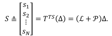 由于组合矩阵𝓛+𝒫具有非奇异特性,可通过矩阵求逆实现精确对消,从而导出: